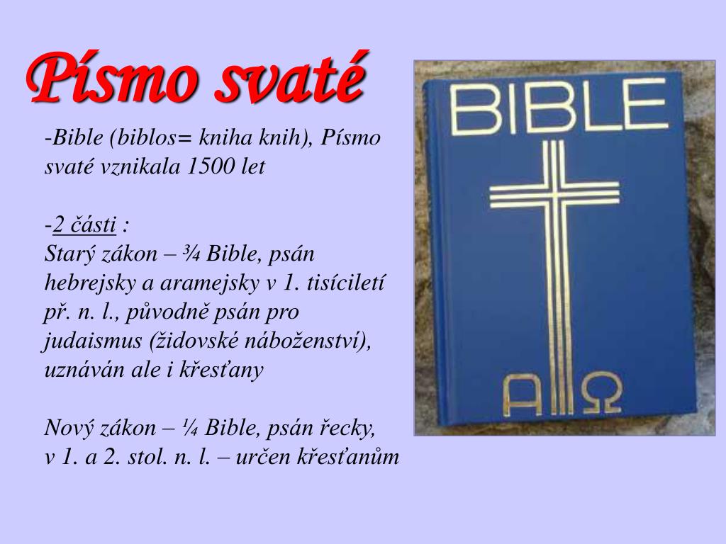 Bible se skládá ze dvou částí, které … Starý zákon nový zákon příběhy křesťanského roku kroužek při zš lysolaje powered by create your own unique website with customizable templates. Bible neboli písmo svaté je soubor knih a spisů, o nichž křesťanské církve věří, že jsou bohem inspirovanou normou víry a života.